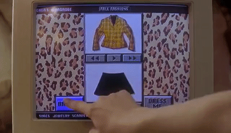 Clueless came out in 1995 and presented us with the most iconic closet of all, years ahead of its time. Cher Horowitz's wardrobe didn't try to sell her new products or make AI-powered suggestions. The background was leopard print, the buttons were gigantic, this computer probably wasn't even connected to the internet. It just helped her put together killer outfits and get ready for school a little faster.